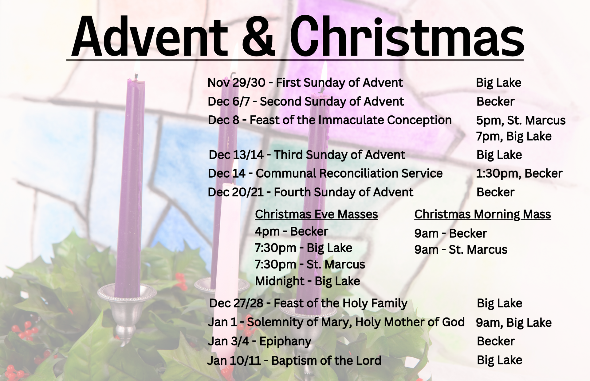 - Communal Reconciliation Service - Sunday, December 15 @ 1:30pm in Becker