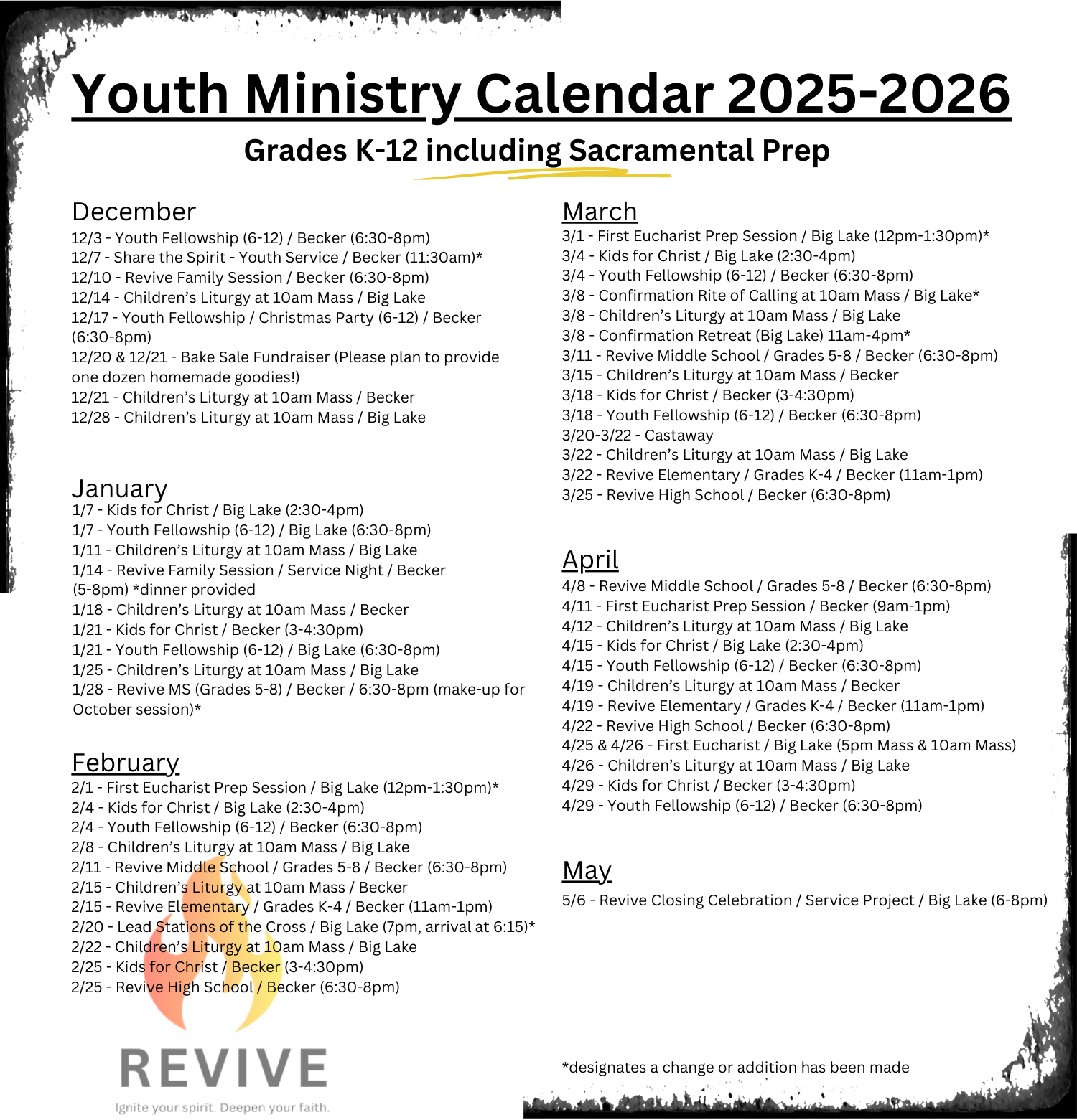 Those who are beginning Confirmation prep this Fall beginning with Revive will be confirmed in Fall of 2026.